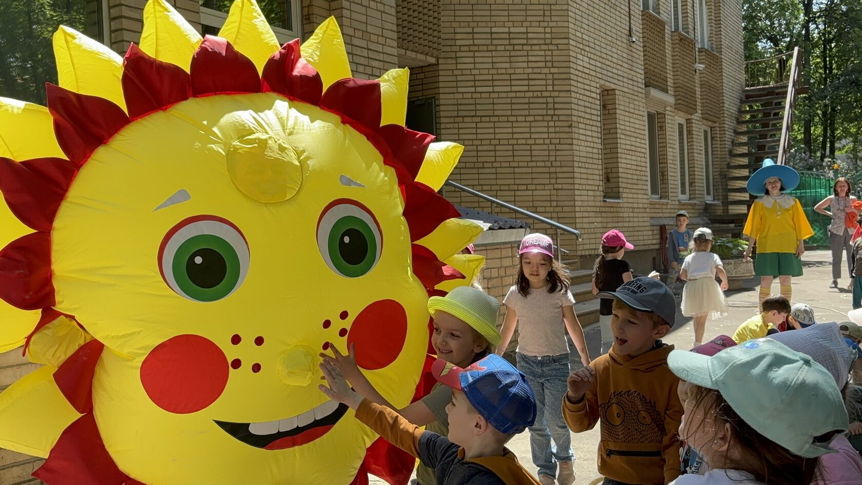 На веселый праздник «Шляпа лету не помеха» к детям сегодня пришли гости из разных сказок: Кот в сапогах, Незнайка, Черепаха Тортилла, Шапокляк, Крокодил Гена и Красная Шапочка. Каждый со своим заданием. Игры со словами и сказочные эстафеты, рисование мелками на асфальте и «чтение мыслей на расстоянии», веселые игры с мячами и танцы…Веселью не было конца!