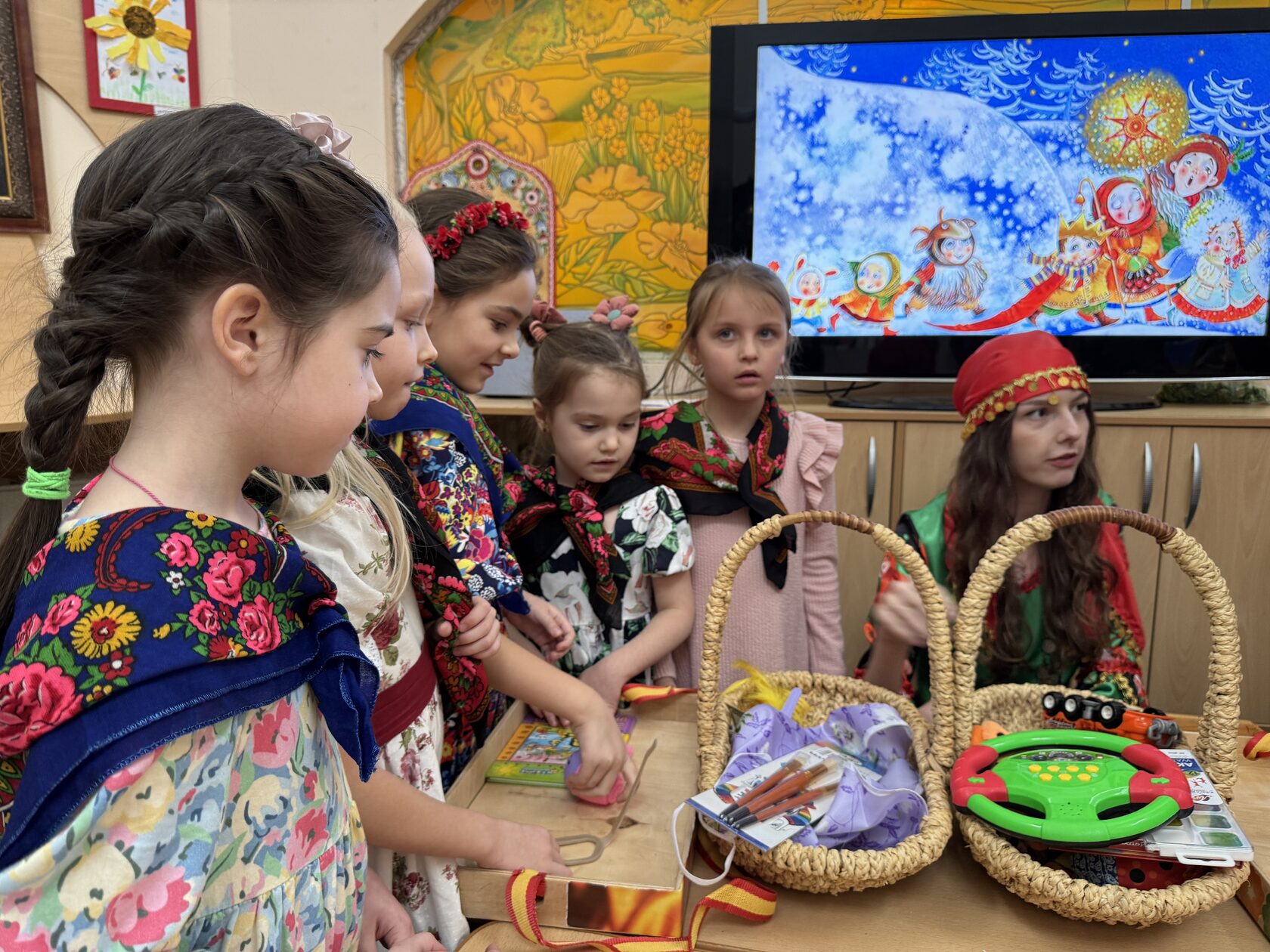 По русским традициям зимой во время Святок проходят колядования. Самыми основным атрибутами данного мероприятия являются переодевания, то есть ряжение, а ещё игры, гадания и пение колядок - коротких хвалебных песенок.