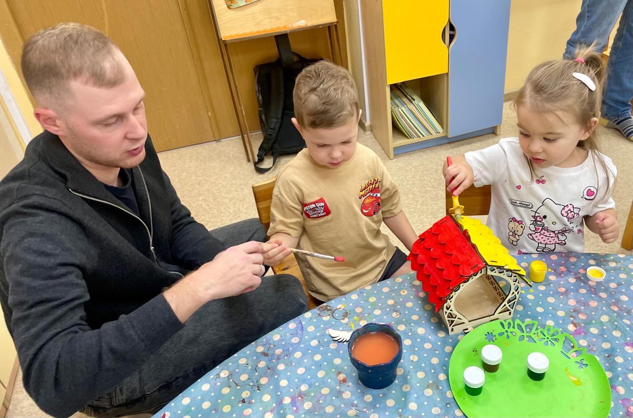 Праздник в честь Дня папы прошел продуктивно: совместными усилиями было изготовлено около десяти кормушек для птиц.